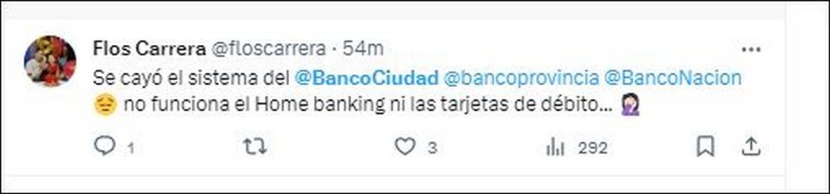 Advirtieron además, que tampoco están funcionando algunas tarjetas de débito pertenecientes a la Red Link y el Homebanking en banco Ciudad, Provincia y en el BNA.