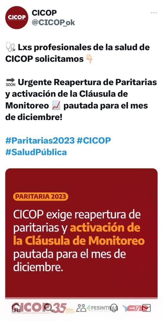 En igual sintonía fueron los pedidos de la Cicop -nuclea a los profesionales de la salud provincial- y de la Asociación Judicial bonaerense que solicitaron activar la "clausula de revisión salarial" y discutir el aumento de haberes del último mes del año para hacer "frente a la escalada de precios y la alta inflación".