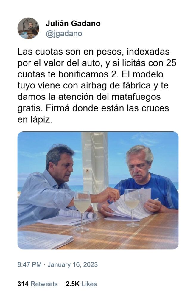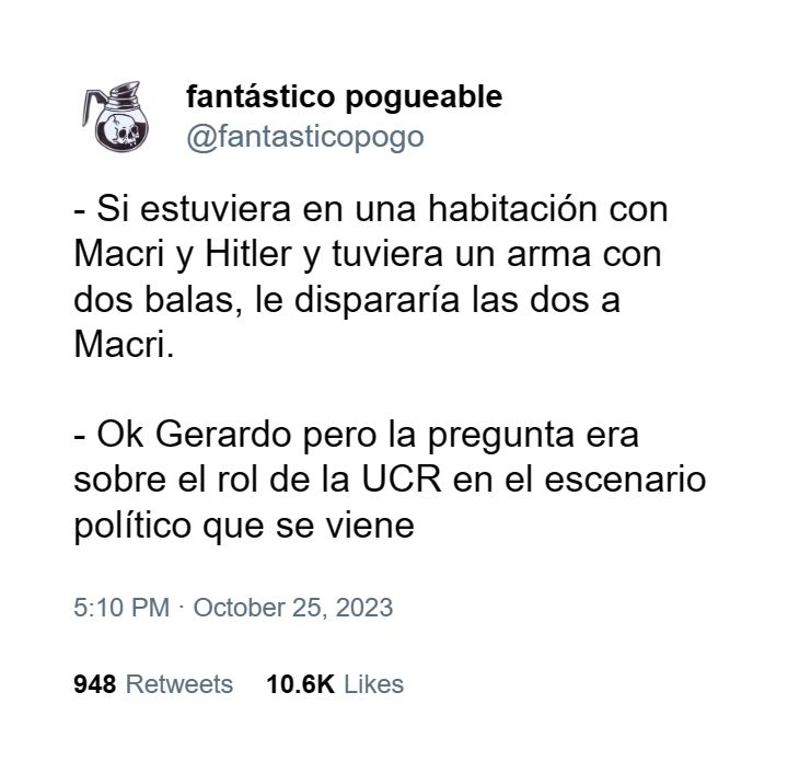 También hizo referencia a las medidas económicas del ex candidato Sergio Massa: "Pasamos casi medio año en campaña y por un segundo Massa hizo creer a muchos que un gobierno con 140% de inflación podía llegar a ganar las elecciones, al final triunfó la ciencia política más elemental, la ola alt-right que en algún momento nos iba a tocar y las ganas de dar vuelta la carta a ver qué hay".