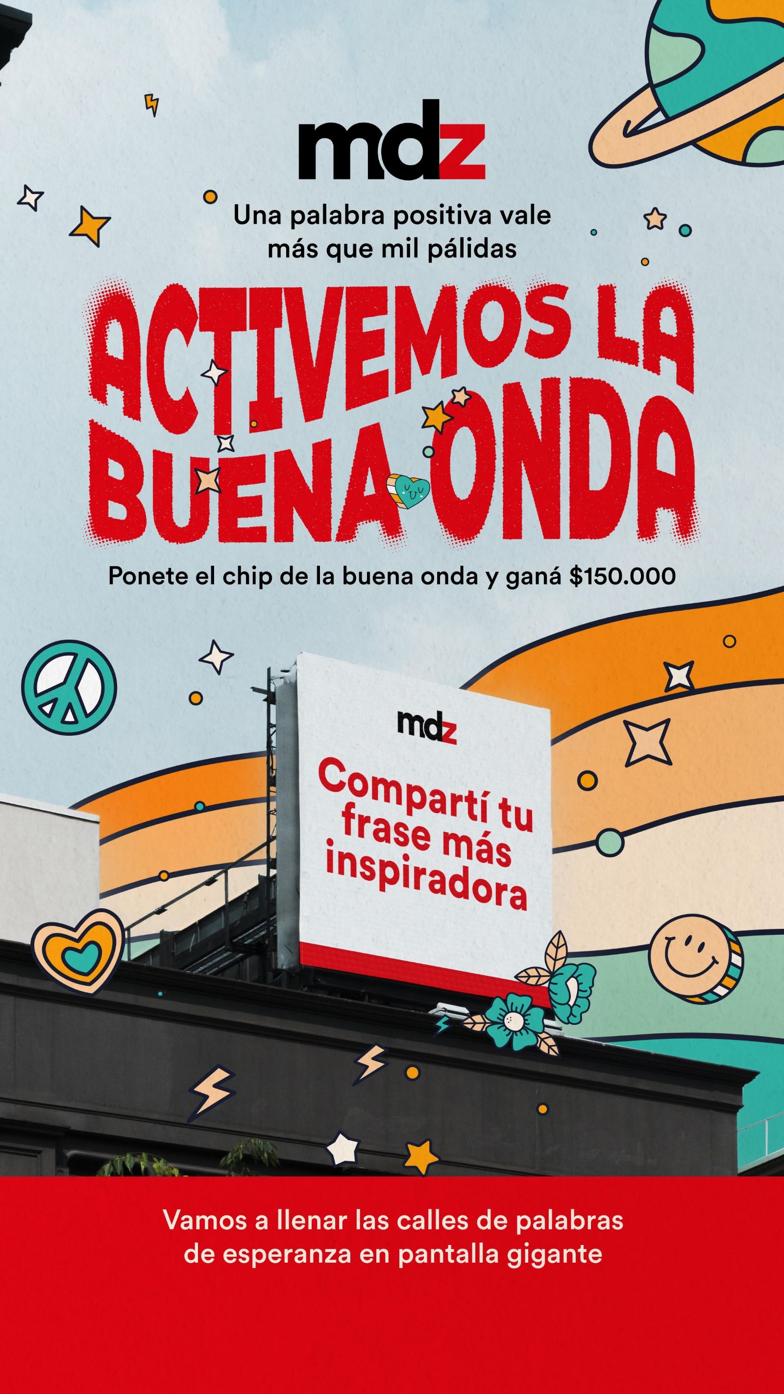 El concurso "Activemos la buena onda" fue organizado por MDZ para cerrar el 2023 con más ánimo. Los participantes debían dejar una frase motivacional, que se proyectará con su firma en más de 500 pantallas y carteles gigantes de todo el país, y completar un formulario con sus datos.