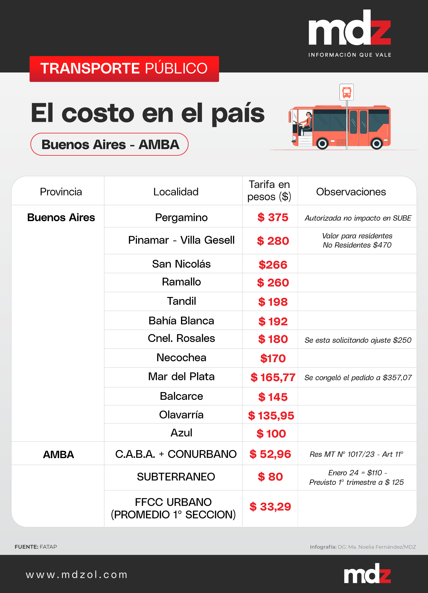 La quita de subsidios al transporte en el Área Metropolitana de Buenos Aires (AMBA) es una de las aristas del ajuste que plantea el Gobierno de la Nación, con el fin de equilibrar las cuentas públicas. Al mismo tiempo, la quita de subsidios al transporte de esta ciudad corresponde también con una corrección de precios en relación con al resto del país, donde llega a superar los $300.