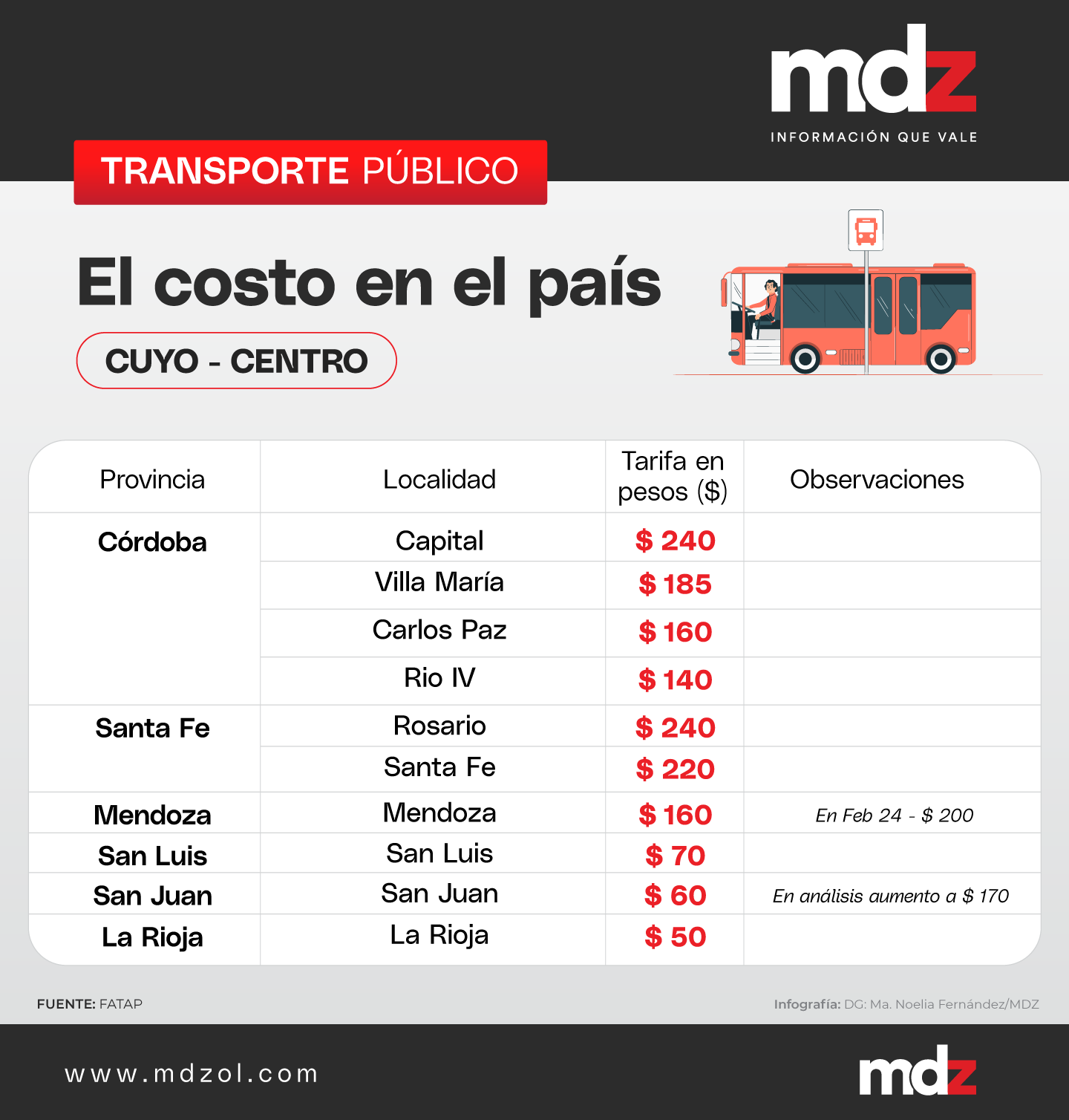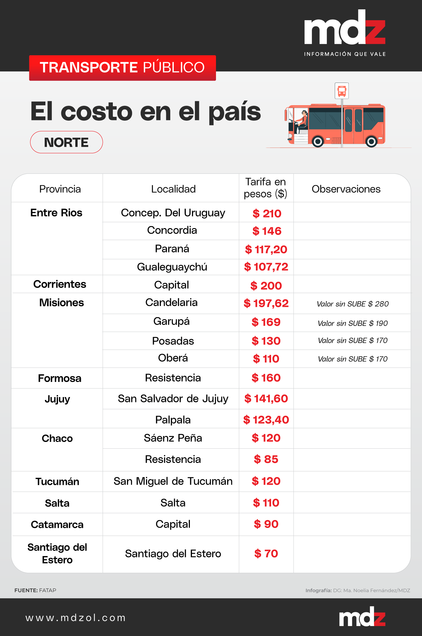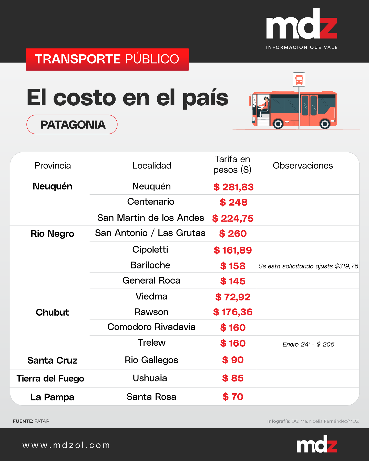 Otras ciudades de gran concentración demográfica como Mar del Plata y Mendoza tienen una tarifa de $165,77 y $160 respectivamente. En la ciudad de Neuquén y Santa Fe, otras ciudades muy habitadas del país, las tarifas se encuentran en $281,83 y $220 en cada una de ellas.