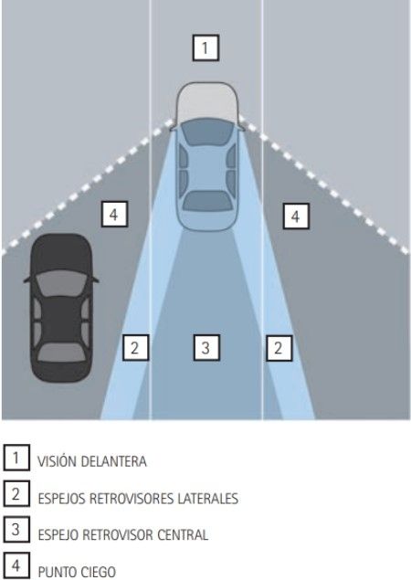 En un auto, los puntos ciegos son todas las áreas de visión que los tres espejos retrovisores no cubren. Esto significa que el conductor no visualiza lo que sucede en esa zona. Para reducir el área de estos puntos, la persona que maneja debe ajustar el espejo interior y los laterales antes de salir.