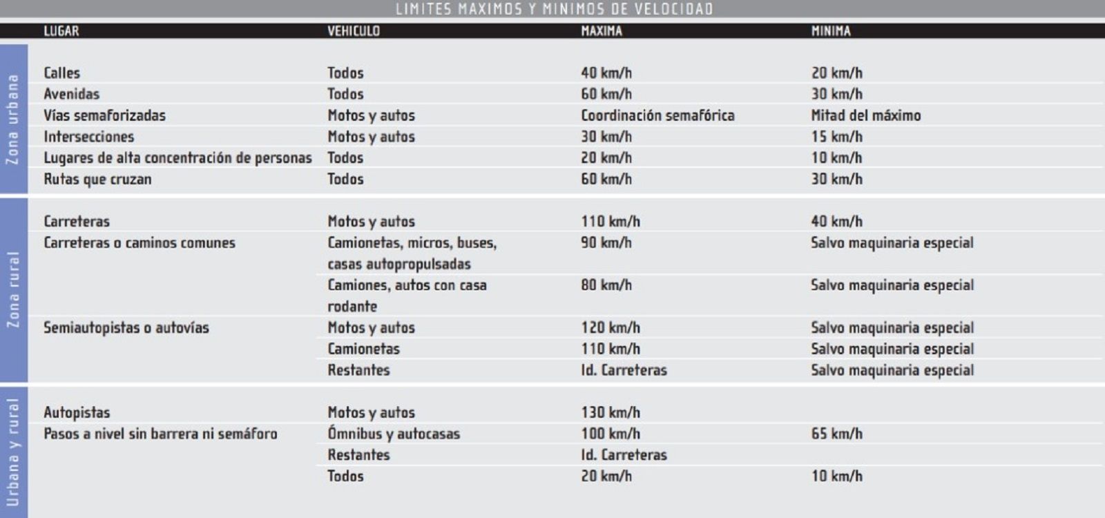 Manejar a una velocidad superior o inferior a la establecida equivale a desarrollar una velocidad peligrosa. Para no ocasionar víctimas, la velocidad debe ajustarse a los topes permitidos por las leyes de tránsito: se considera excesiva la que no permite detener el vehículo en tiempo oportuno. Estos son los límites establecidos:
