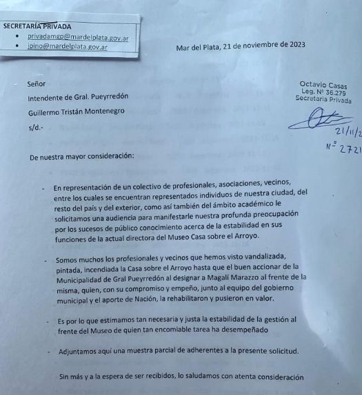 También recordó distintos entredichos entre los funcionarios locales y nacionales, quienes impulsaron que la Casa sobre el Arroyo sea el primer museo nacional de Mar del Plata, en una gestión que se frustró en reiteradas ocasiones por "falta de voluntad política".