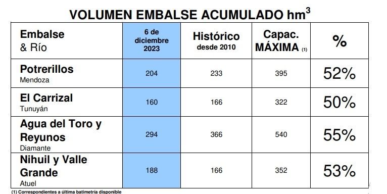 - En la Temporada 22/23 escurrieron 662 hm3 (equivalente al 54% del derrame medio histórico).