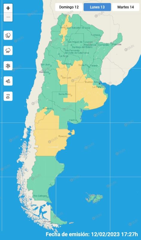 El Servicio Meteorológico Nacional (SMN) indica que este lunes será una jornada calurosa con poca nubosidad en la mañana y descenso de la temperatura en relación al fin de semana. Se registrarán vientos moderados del sudeste rotando al noreste. El sistema nacional no emitió alerta por fenómenos que pueden provocar riesgos para la integridad física de las personas.