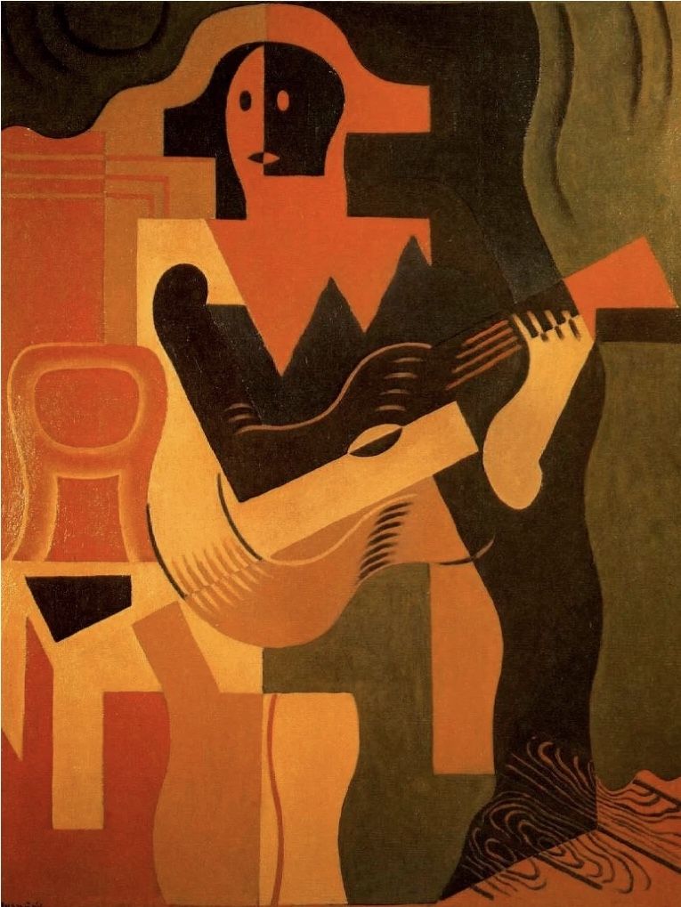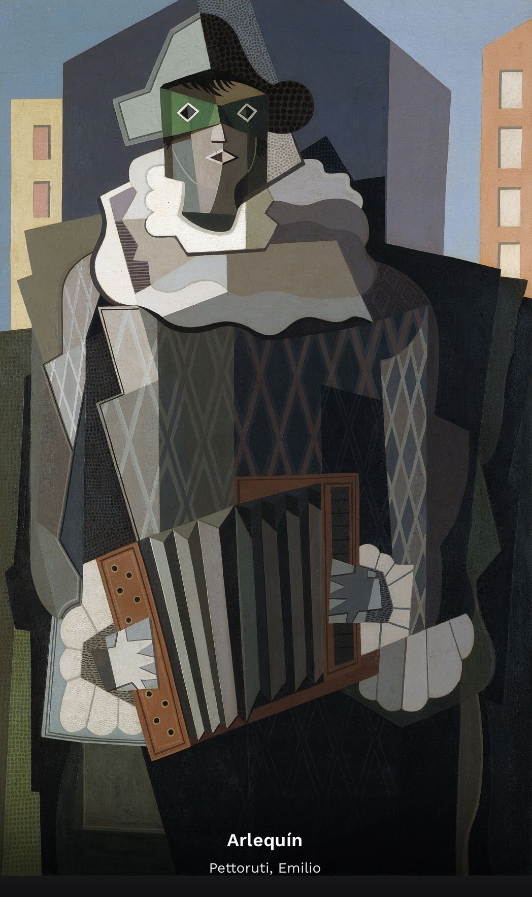 En un lenguaje cubista Juan Gris, pinta por la misma época “Arlequìn con guitarra” y poco después (1928) nuestro Emilio Pettoruti el fenomenal “Arlequìn” del Museo Nacional de Bellas Artes.