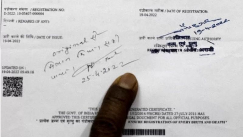 Rajaram Modi había presentado las firmas y los números de identidad biométricos de cinco personas de su aldea y la declaración jurada que decía que su hijo había muerto, y obtuvo el certificado de defunción de su hijo.