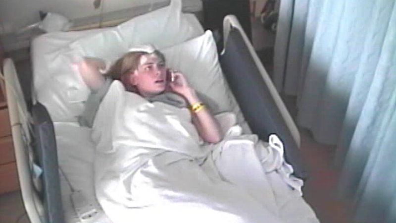 Un día durante la internación, Susannah estaba en su cama sosteniendo un teléfono celular apagado. Estaba muy agitada y sus ojos algo saltones.