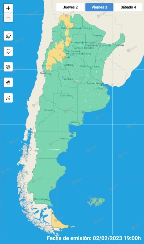 En el caso de la cordillera de los Andes las condiciones meteorológicas serán inestables en horas de la mañana con probabilidad de precipitaciones que se extenderán durante toda la jornada dando paso a nevadas en Punta de Vacas.
