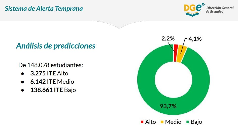 El director general de escuelas, José Thomas, explicó que "a través de este estudio se cruzó toda la información nominal del Sistema GEM y elaboraron patrones que generan información que podría ayudar a predecir los casos de estudiantes que están en alto y mediano riesgo de abandonar la escuela".