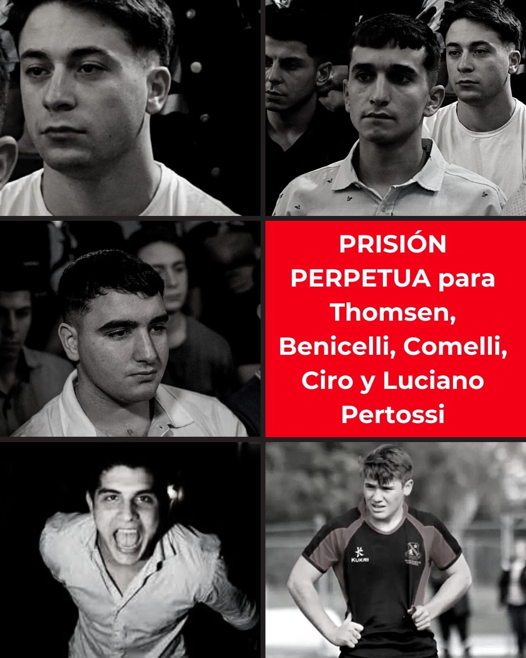 En el fallo, la Justicia condenó a Máximo Thomsen, Ciro Pertossi, Enzo Comelli, Matías Benicelli y a Luciano Pertossi como coautores penalmente responsables de homicidio doblemente agravado por el concurso premeditado de dos o más personas y por alevosía en concurso ideal con lesiones leves.