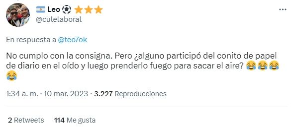 El hilo lo realizó el usuario @teo7ok quien además es pediatra. Así fue como llamó la atención de todos: "¿Qué remedio casero les daban de chicos para matar los parásitos? Mi abuela me daba una cucharada de dulce de leche y a los 10 minutos me daba un trago de fernet, porque en su teoría, los parásitos iban a comer el dulce de leche al estómago y cuando me daba el fernet se morían".