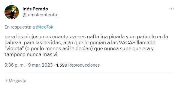 En pocos minutos el hilo se llenó de cómicos e impensados remedios contra los parásitos. "Me acuerdo hasta hoy: una cucharada de dulce de leche con mucho coco rallado arriba. Supuestamente en dulce los atraía y el coco rallado los mataba", comentó una usuaria.