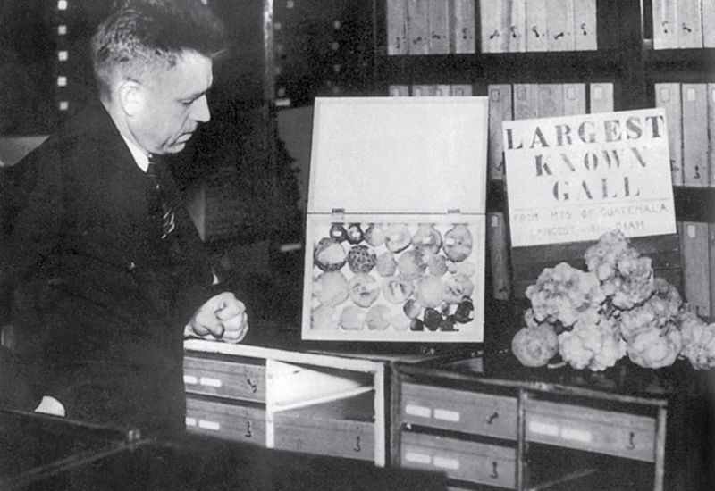 Kinsey con "la avispa gallarita más grande conocida" que encontró en Guatemala en 1936.