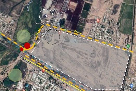 Es por esto que las obras principales se ubicarán en la intersección en “T” de la Ruta Provincial 50 y la avenida San Martin, continuación avenida Libertador, donde se sitúa el puente de hierro, las vías ferroviarias, dos plazas públicas con churrasqueras, dos paradas de ómnibus enfrentadas de un lado y otro de la calle. Además, en el entorno inmediato se emplazan Belgrano Cargas y la Aduana, en el predio de lo que fue la estación del ferrocarril, la industria de derivados vínicos, un colegio y una ciclovía inconclusa.