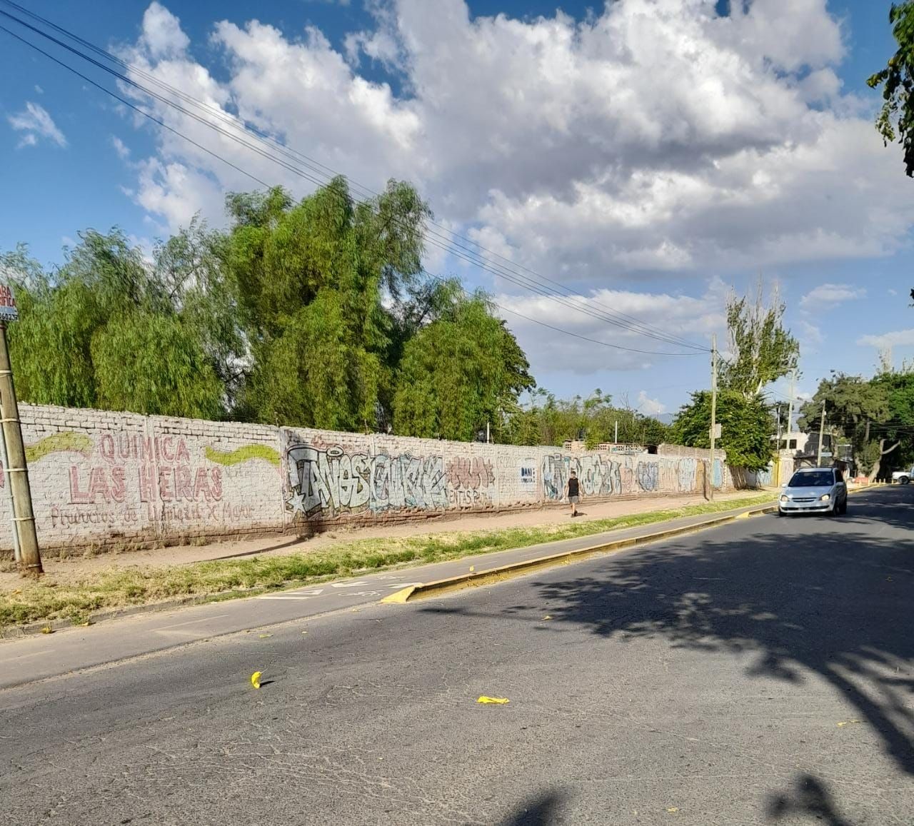 Las imágenes que acompañan la nota fueron sacadas desde la entrada del Mercado Cooperativo de Las Heras, por lo tanto se trata de una vía bastante transitada, a pesar del evidente estado calamitoso de la calzada. A esto se suma que se trata de una arteria que se extiende desde Lisandro Moyano hasta San Martín, donde se convierte en Julio Argentino Roca.