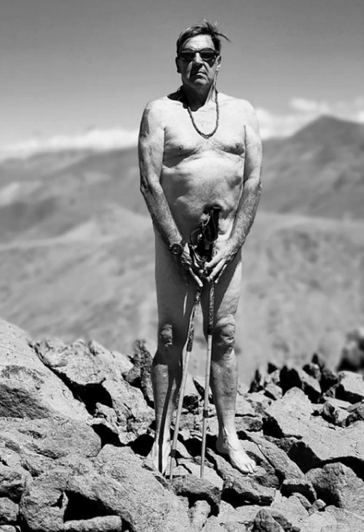 Al llegar a la Cumbre del Saladillo, cordón del Acay, 5.200 msnm, le dijo al fotógrafo Henry von Wartenberg que lo capture desnudo para visibilizar "el desamparo de los jubilados argentinos". Después siguió su trayecto en el Cerro Pompeya, donde grabó nuevos videos.