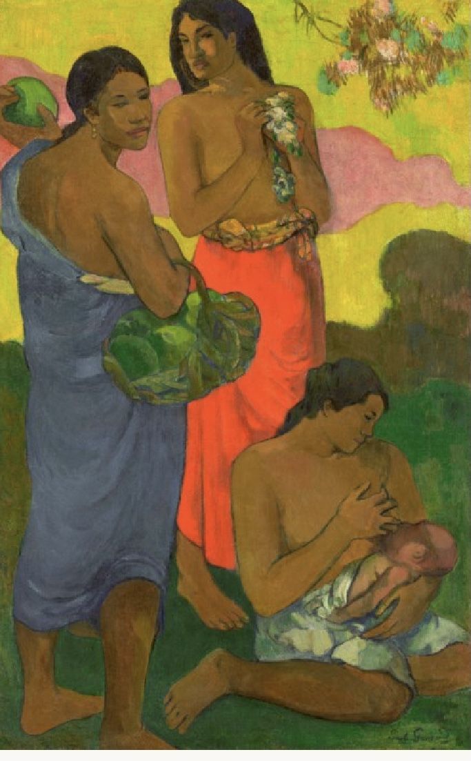 Esta monumental Maternidad fue pintada en Tahití en 1899. Marca un récord de subasta de Gauguin (1848-1903), duplicando el récord anterior del artista. También esta obra ya había sido vendida en remate, fue en 2004, y en aquella oportunidad recaudó menos de la tercera parte del valor logrado ahora.