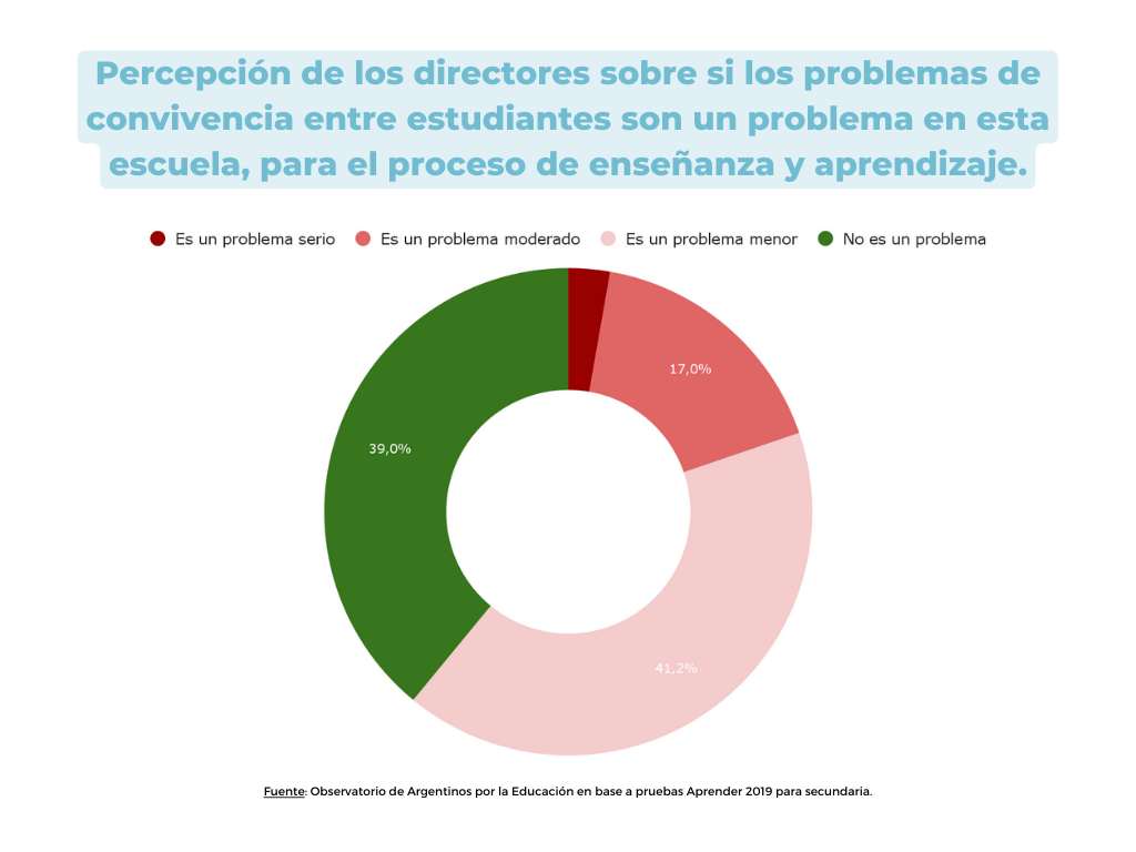 Si bien este es un caso extremo, el acoso y la violencia en el ámbito escolar son temas que preocupan. De acuerdo con el último informe del Observatorio de Argentinos por la Educación, el 75,4% de los estudiantes del último año del secundario reconoce que en su escuela hay episodios de discriminación o violencia.