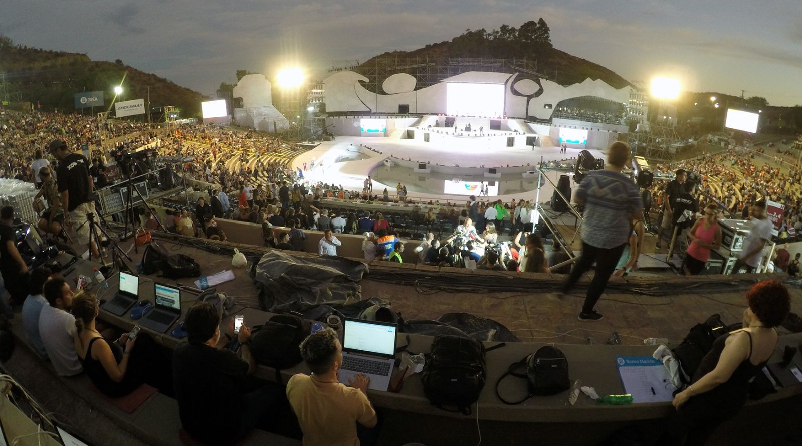 La puesta en escena luce impactante y el sonido ya se destaca, pues, desde las 19, la música y dos locutores han pretendido animar a las decenas de miles de personas aquí presentes.