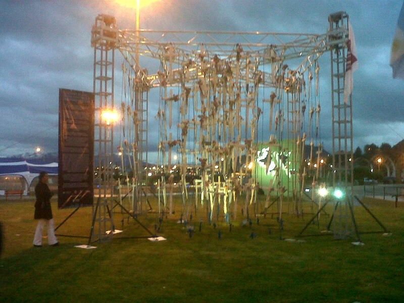 Al regresar, las cruces tuvieron otro destino impactante: Ushuaia. “Hicimos un dispositivo que se eleva a 6 metros de altura y colgamos todas las cruces y estuvimos detrás del monumento principal de la plaza Héroes de Malvinas, que es una figura de las Malvinas que- justamente - está mirando a las Islas. Fue impresionante”.