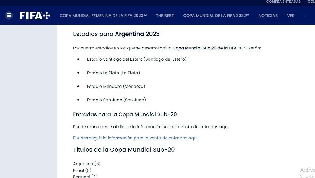Tras la polémica, la FIFA nombró como sede a Mendoza, las otras tres sedes en donde se disputará el torneo son el Estadio La Plata, Estadio San Juan y Estadio Santiago del Estero.