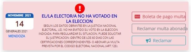 Quien no acuda a votar ni justifique su ausencia ante la Justicia Nacional Electoral, deberá pagar una multa económica y será incorporado al Registro de Infractores.
