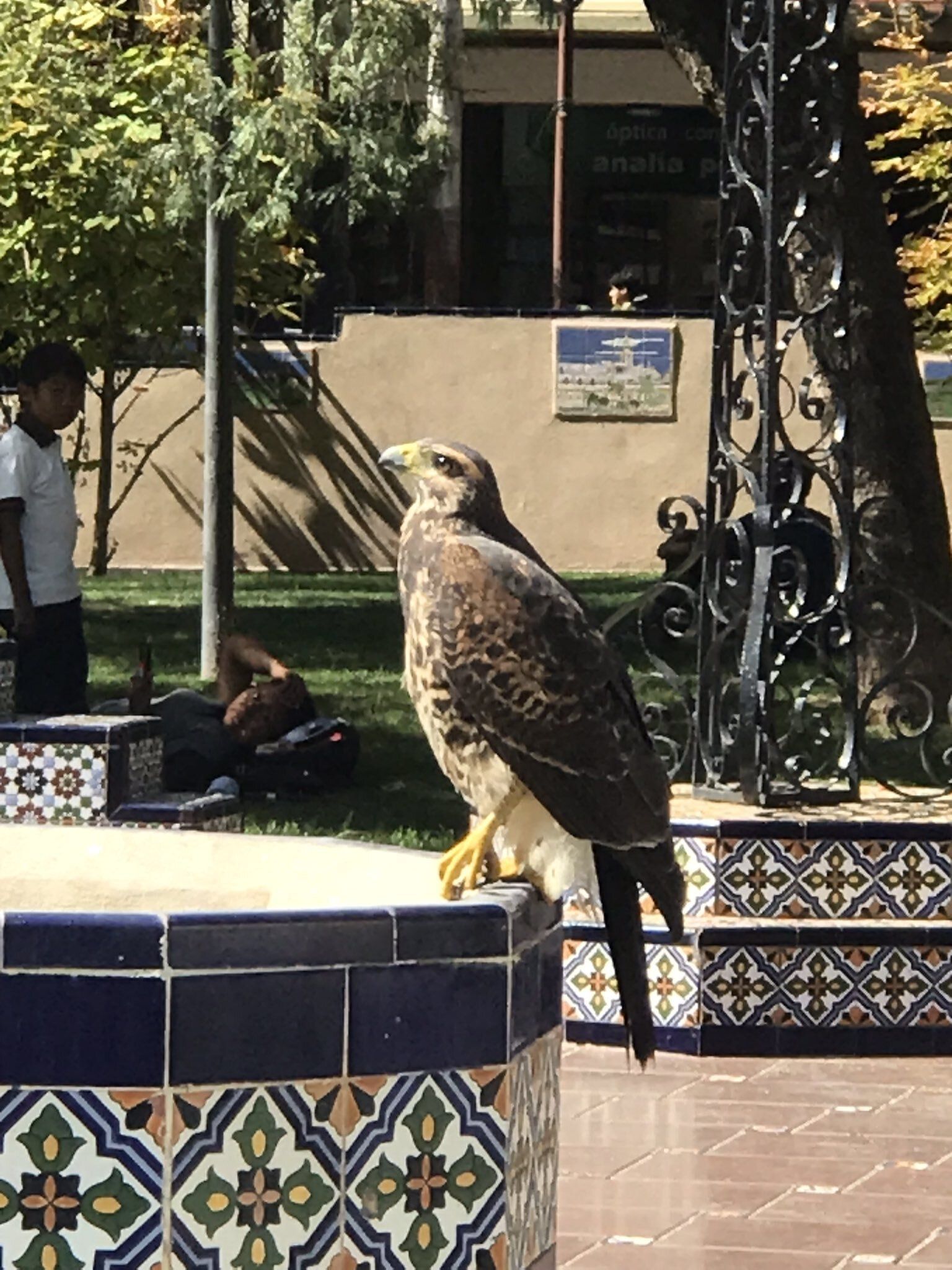 En las imágenes compartidas por Soledad, se puede ver al animal posando en la fuente de la plaza, bajo el Sol mendocino. En un recorrido por dicho espacio verde, varias personas que concurren al lugar informaron que es común verlo "cazando palomas".