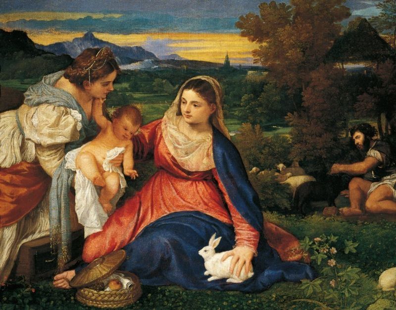 En la pintura de Tiziano, el conejito blanco puro es un símbolo del celibato de María. En el dibujo de Pisanello, el conejo simboliza la lujuria.