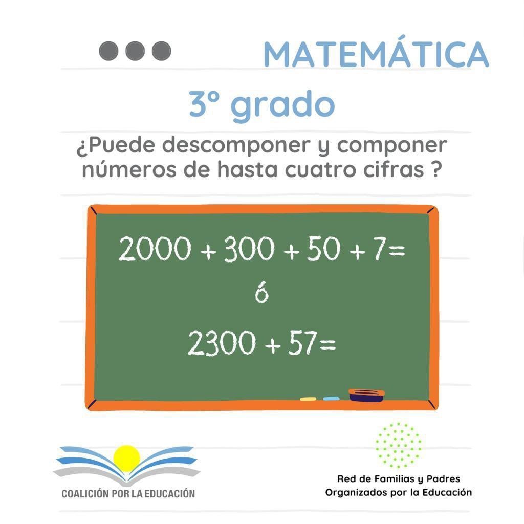 Para poder conoce de manera más detallada los contenidos de lengua y matemática esperados para cada grado, se puede acceder al la Cartilla de Logros de Nivel Primario completa en el siguiente link, también entrando a las redes de Padres Organizados: @PadresOrg en Twitter o @PadresOrgFed en Instagram.
