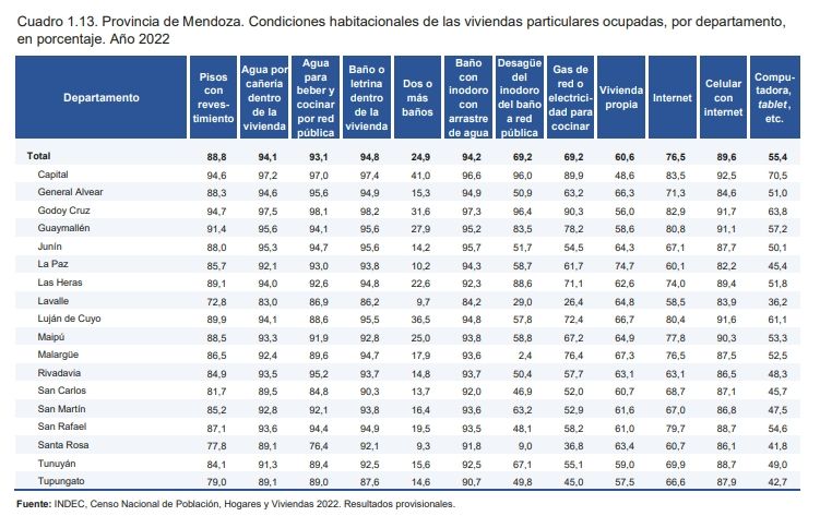 En la capital de la provincia se encuentra el porcentaje más alto de casas con computadoras con un 70,5% de viviendas según el Censo. Y en el departamento que menos hogares con computadoras hay es en el municipio de Lavalle con un 36,2%.