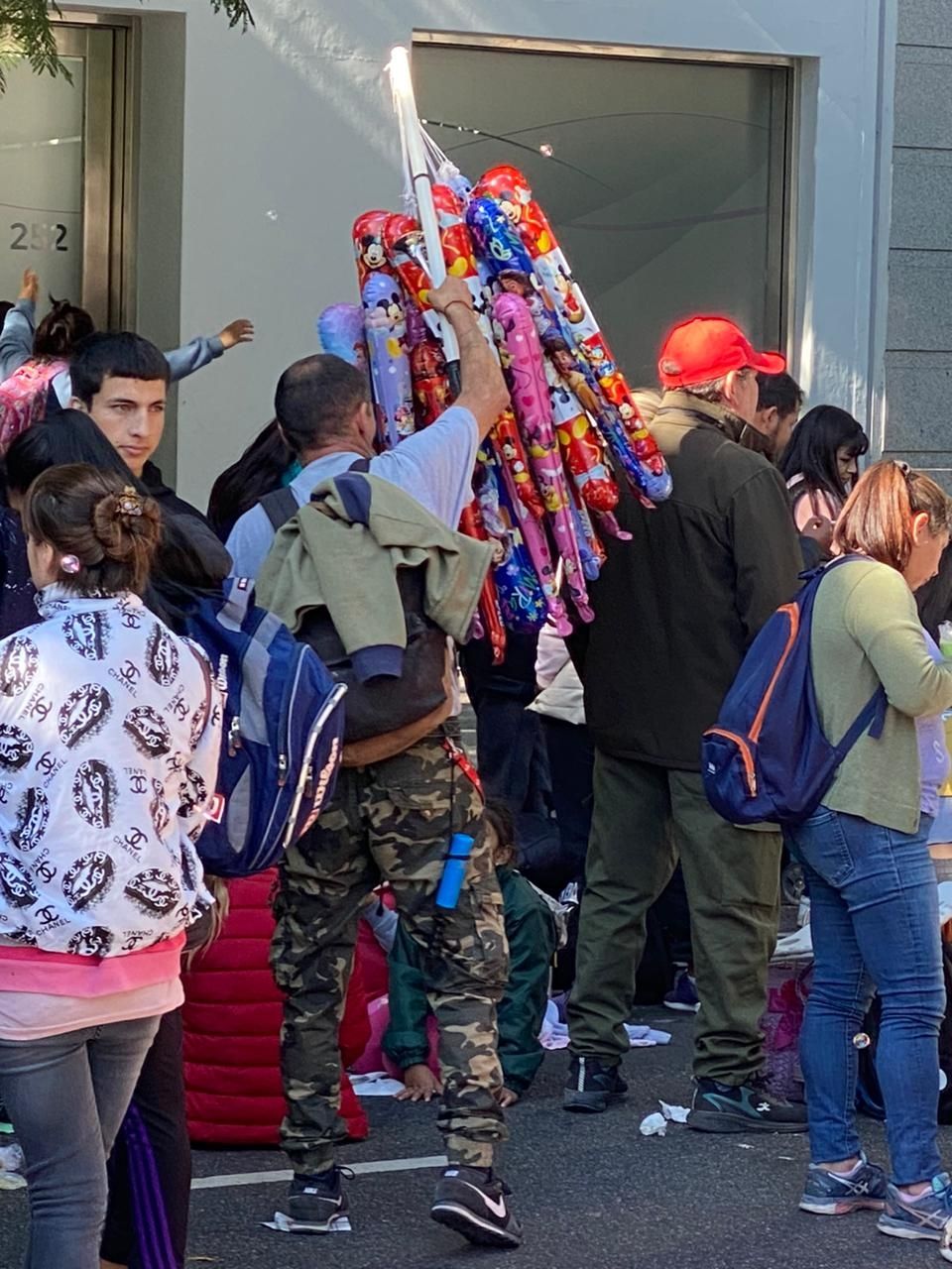 Por cada cuadra, en el piquete, había al menos cuatro vendedores ambulantes que ofrecían distintos productos: desde alimentos hasta globos y silbatos. Las operaciones se hacían con pago en efectivo y pocas opciones, para que la entrega sea lo más rápida posible. Por ejemplo, las hamburguesas se vendían al pan, como máximo con lechuga y tomate, y los globos de personajes se pedían por color. Es decir, para simplificar, el vendedor preguntaba si globo celeste o rosa y no si de Mickey o de Minnie.