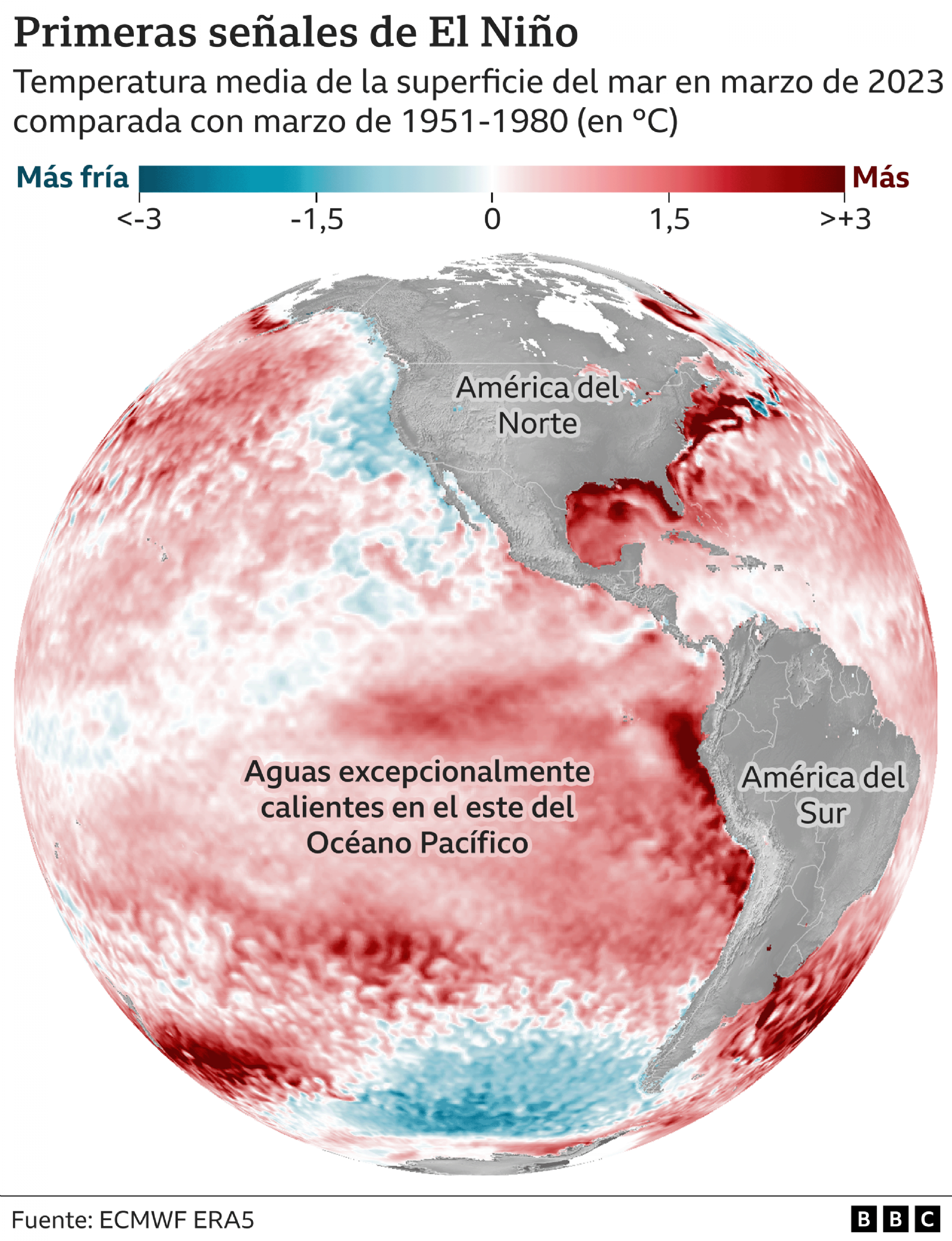 Según le explicó a la BBC el científico climatológico Kevin Trenberth, "la fuente principal de los fenómenos que provocan extremos en el clima está relacionada con el calor oceánico que dinamiza los sistemas meteorológicos".