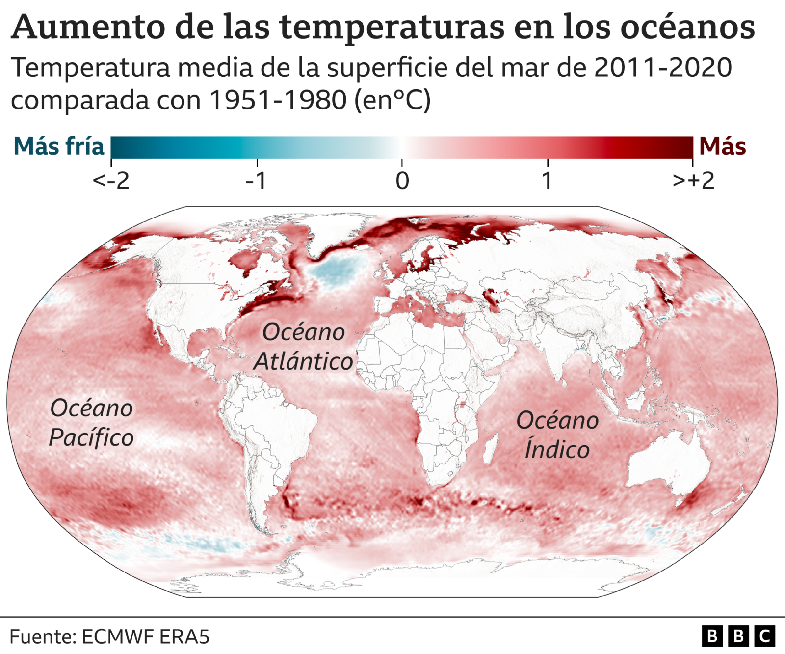 Qué efectos tiene en el planeta el calentamiento de los océanos (más allá de la muerte de la flora y fauna marinas)