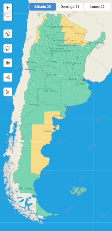 También hay otras provincias bajo alerta amarilla por fuertes vientos. Las afectadas son: Catamarca, Chubut, Jujuy, Río Negro, Salta y Santa Cruz.
