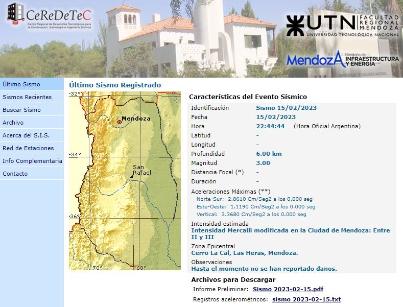 El informe se publica en la página del Ceredetec y allí las personas pueden ver el último sismo registrado (que supere la escala) y todos los anteriores. A diferencia del Inpres, estos informes no son instantáneos, ya que son cargados manualmente por los investigadores: "Estos informes se realizan manualmente, por lo que suelen salir con un poco de tardanza, puesto que los trabajadores del Cederetec no están constantemente con una computadora al lado para armar el informe".