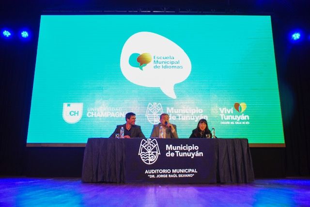 Martín Aveiro, Intendente de Tunuyán, presidió la mesa académica acompañado por Emir Andraos, Presidente del HCD y Andrea Rodríguez, Directora de Educación. En sus palabras, Aveiro afirmó que la escuela de idiomas municipal va a marcar un precedente en todo el país ya que Tunuyán es el primer departamento en crear de manera gratuita un centro de estudio superior en idiomas extranjeros.