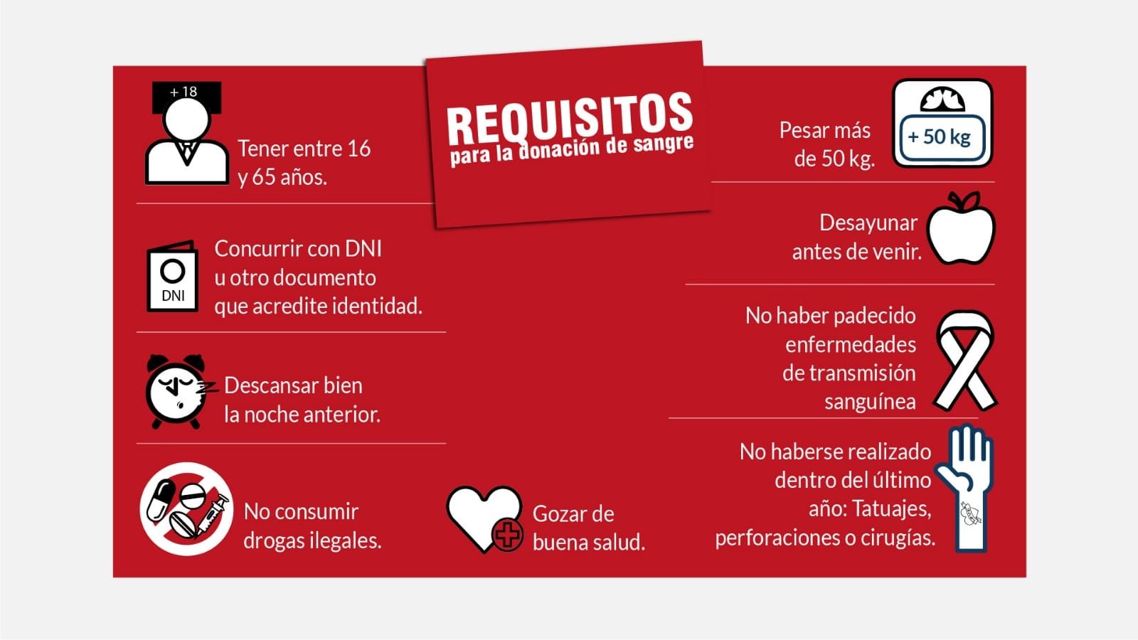 Para donar sangre, se puede ir de lunes a viernes de 8 a 14:30 en Garibaldi esquina Montecaseros al Centro Regional de Hemoterapia. Se especificó que se debe llevar DNI a la hora de donar y que todas aquellas personas con tratamientos crónicos (hipertensión, hipertiroidismo, etc) que estén controladas con medicación pueden donar sangre, al igual que las personas que se hayan tatuado, colocado un piercing o realizado alguna cirugía, siempre y cuando haya pasado un año de esa intervención.