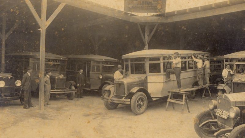 ??????Los primeros japoneses que llegaron buscaron la manera de abrir sus propios negocios en la ciudad, como este taller de carrocería de comienzos del siglo XX.