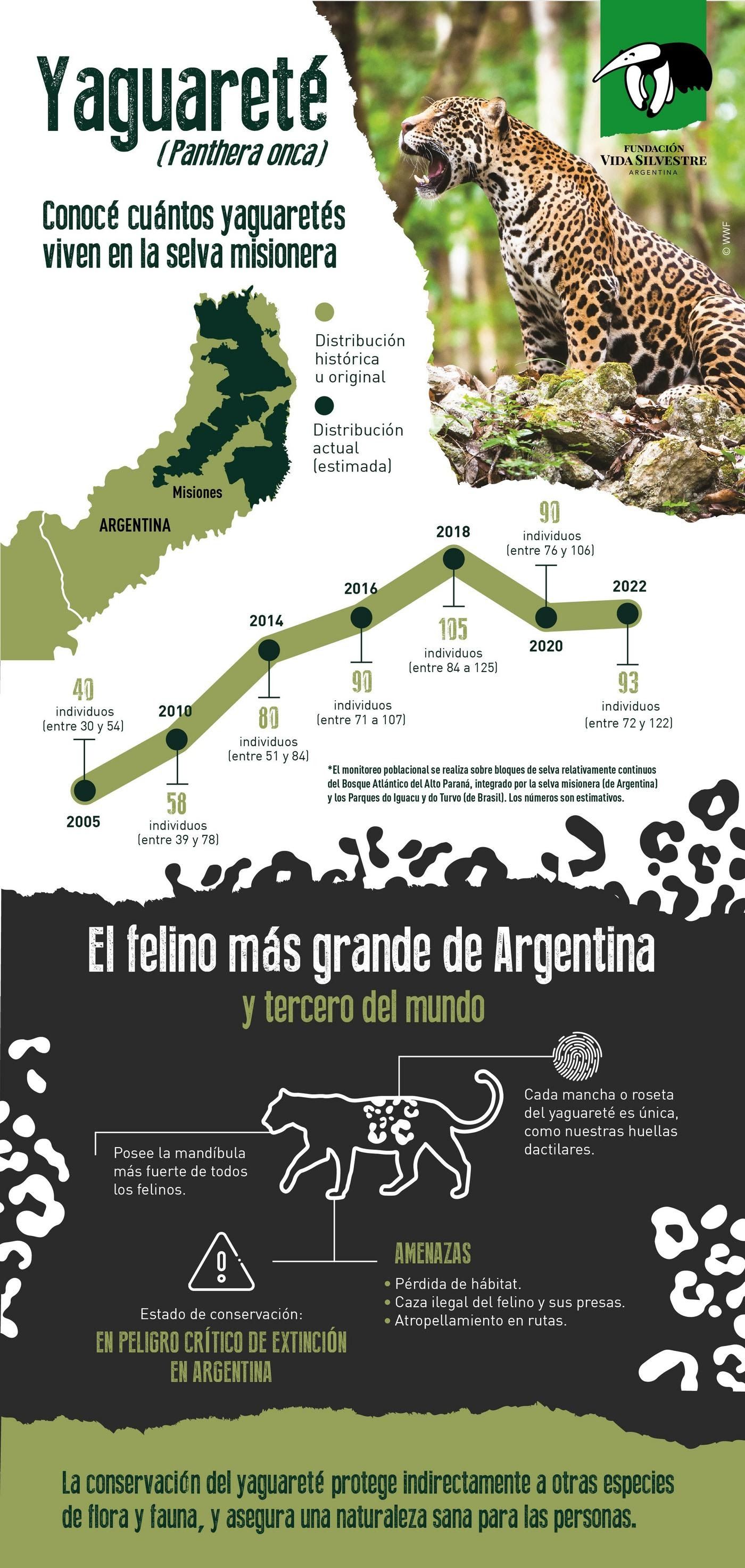 "Los datos del monitoreo demuestran que los esfuerzos de conservación del yaguareté están brindando resultados, pero sigue siendo imprescindible hacer más para que el felino y sus presas sobrevivan", sostuvo por su parte Fernando Miñarro, director de conservación de Fundación Vida Silvestre Argentina.