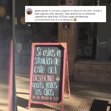 El frío se hizo sentir con fuerza durante los últimos días en Mendoza y gran parte del país. En medio de esta “ola polar”, un negocio ubicado en pleno centro mendocino ofrece “desayuno gratis” para personas en situación de calle.