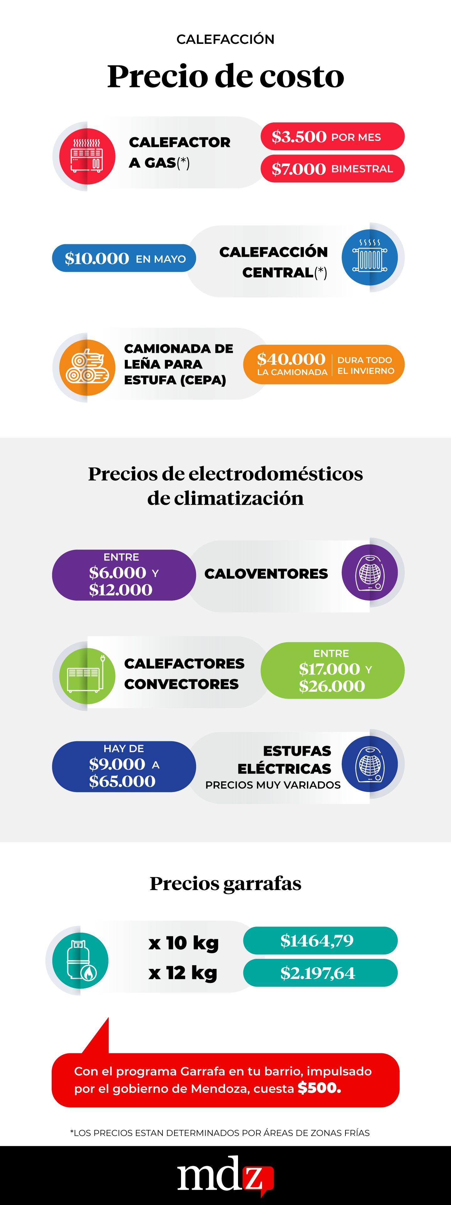 Lo más económico que se puede conseguir son los caloventores, que van desde los $ 6.000 hasta los 12.000 pesos, aproximadamente. Otro de los productos económicos que se pueden conseguir son los calefactores convectores, que rondan entre los 17.000 y los 26.000 pesos, mientras que los vitroconvectores promedian los $ 29.000.