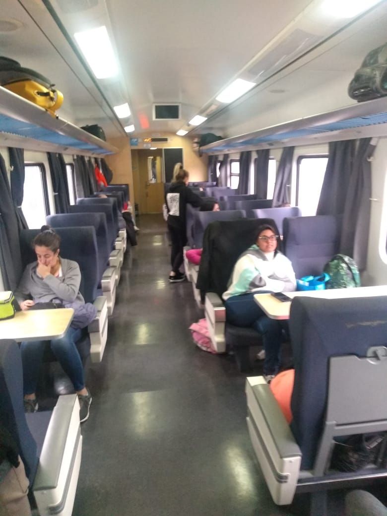 Esta vez el trayecto que fue extenso, y lento, tanto que hicieron una “familia de vagón” con el resto de los pasajeros. “Les decía que si nos ponen una cámara somos Gran Hermano ¿Quién convive con otra persona 30 horas en este espacio?”, comenta entre risas Marian.