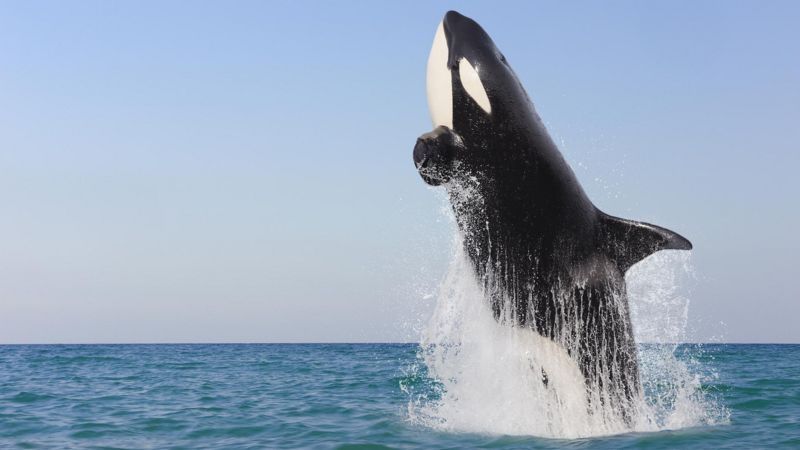 Las orcas son conocidas en inglés ballenas asesinas, pero en realidad son parte de la familia de los delfines y no suelen ser agresivas con los humanos en la naturaleza.