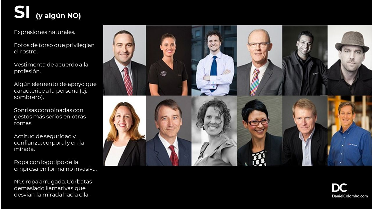 - Contrata e invierte en buenos profesionales para hacer un pack de diez o más fotos corporativas: no improvises. Actualiza las fotos una vez al año.