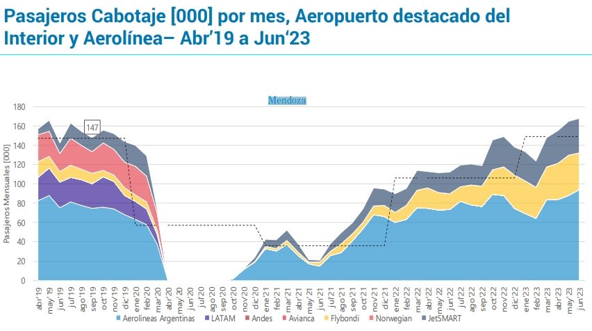 Y para los registros venideros se tendrá en cuenta las nuevas conexiones aéreas que va concretando Aerolíneas Argentinas y el Gobierno de Mendoza como fue la de Tucumán-Mendoza, que comenzará a funcionar en octubre y aumentará el flujo turístico con otros puntos del país a los que antes no se llegaba de forma directa.