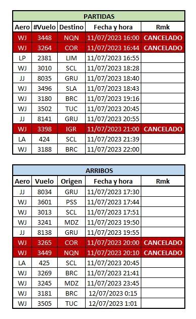 En cuanto a JetSmart, hasta el momento sufre la demora de 15 vuelos y la cancelación de uno con destino a Córdoba.