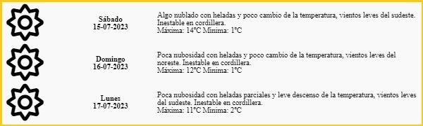 En tanto que el domingo habrá “poca nubosidad”, se esperan heladas y poco cambio de la temperatura, con una máxima de 12º y una mínima de 1º.